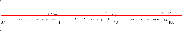An illustration of a logarithmic scale. Unlike a normal number line, where the distance between numbers comes from adding, the distance between numbers on a logarithmic scale comes from multiplying. (Via Wikipedia)