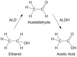 The authors examined the activity of two enzymes involved in the metabolisation of ethanol: alcohol dehydrogenase (ADH), which converts ethanol into acetaldehyde, and acetaldehyde dehydrogenase (ALDH), which converts the acetaldehyde into acetic acid. Accumulation of acetaldehyde after drinking is thought to be one of the causes of hangovers, as well as many of the diseases associated with alcohol abuse, and so the authors used an assay to test the activity of these isolated enzymes in the presence of a number of Chinese beverages to find which would minimise the time acetaldehyde is present in the body before it is broken down. Of those tested, “xue bi“, widely reported as being equivalent to Sprite, was found to give the best combination of increasing ALDH activity without significantly effecting ADH activity. In contrast, some herbal teas were found to inhibit ALDH activity, which could prolong hangovers.